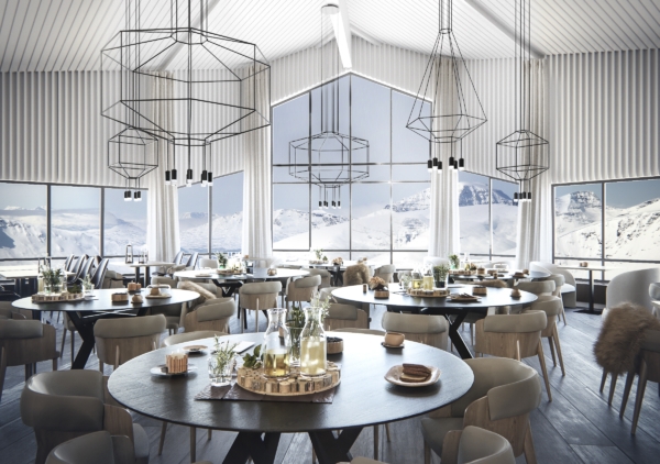 The concept, developed by Annvil after an on-site visit and competitor analysis, allows for an autonomous co-existence of two types of restaurant: the light-colored, ground floor dining area offers casual lunches, while the dramatic decor of the top floor houses a fine-dining restaurant. Ensuring a comfortable microclimate on the top floor posed a particular challenge, as the all-glass construction of the space creates the risk of overheating in the bright Azerbaijani sun.